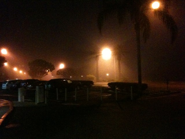 と、朝、こんな霧だったと思ったら、隣のアメリカンイーグルは、ロスからの飛行機が引き返したのでフライトがキャンセルとか!