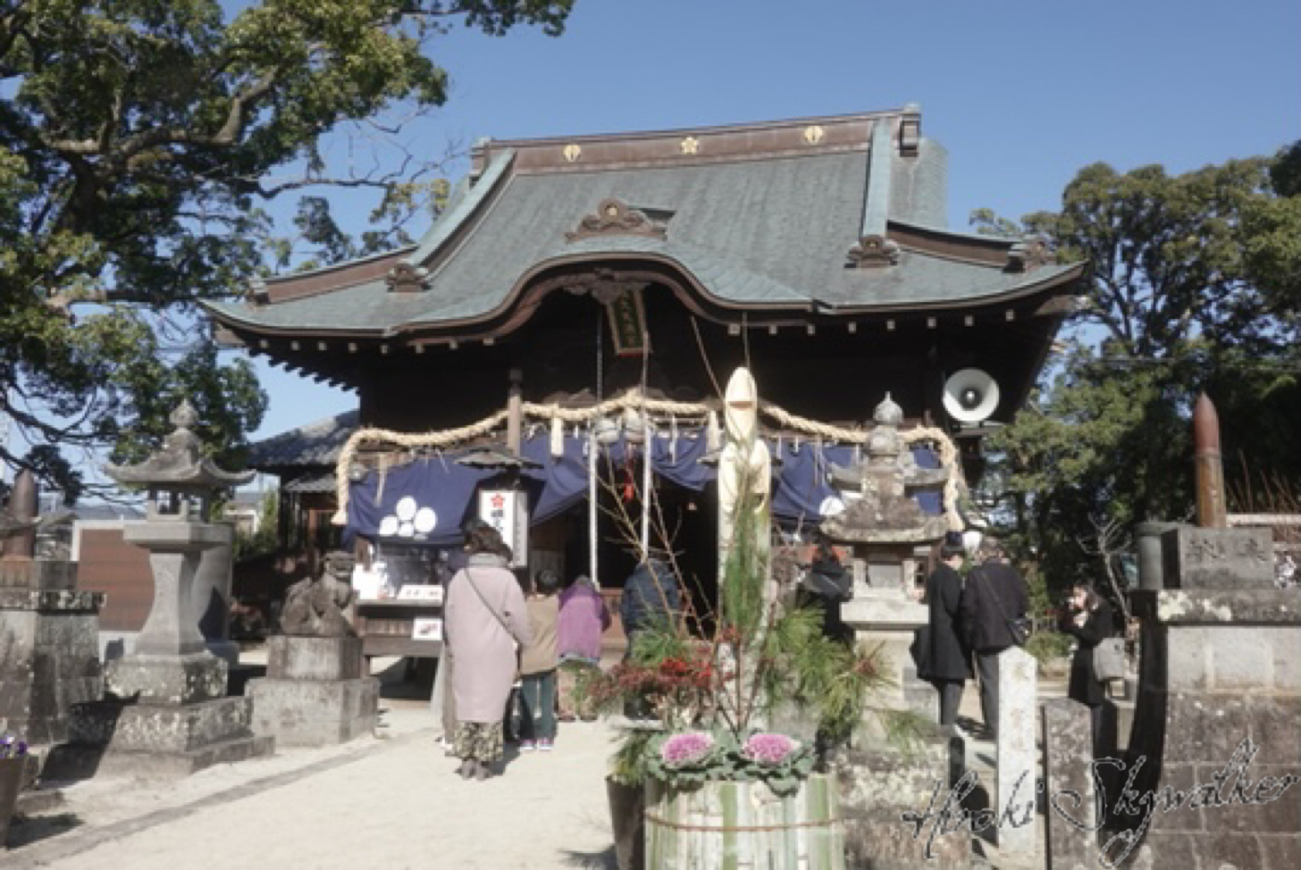 小さな天満宮ですが、だんだん初詣の人も増えてきたように思います。門松も立派なものに!
