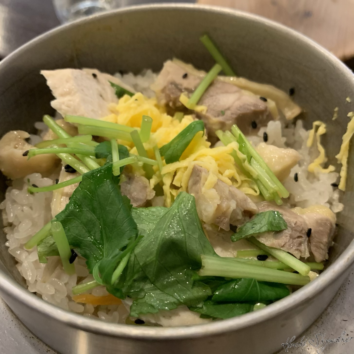 こちらは、翌日に行った時の、定食じゃない大和鶏の釜飯。こちらは、鶏肉がまたしっかりとした味で。そして同じく、おこげがいい感じ。