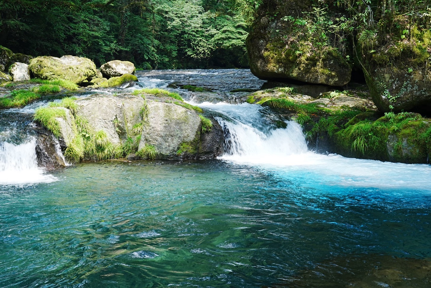と言うわけで、写真をいくつか。水が信じられないくらい綺麗で、青や緑の流れが涼しく癒しを誘ってくれました。